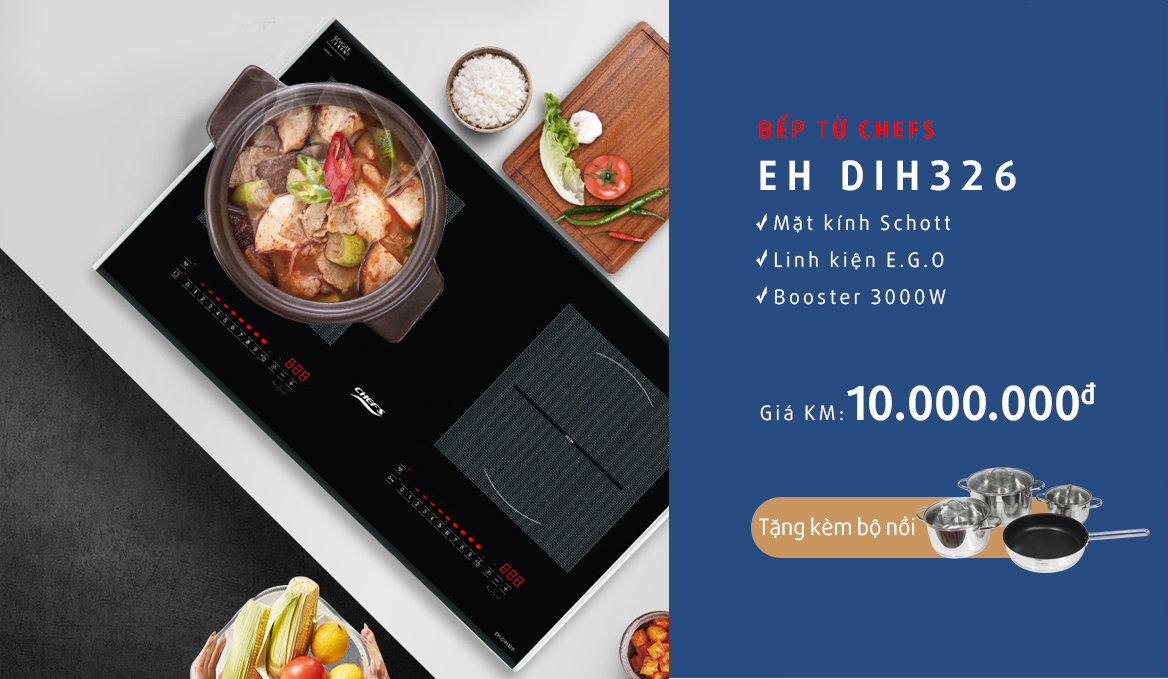 Thời điểm cuối năm, dòng bếp từ Chefs lắp ráp Việt Nam đang được giảm giá rất sâu và rất nhiều. Với nhiều ưu điểm nổi bật từ hình thức đến chất lượng đun nấu và model Chefs EH DIH326 cũng không nằm ngoại lệ này. Trong bài viết dưới đây beptuchefs.net sẽ giới thiệu chương trình ưu đãi cuối năm rất sốc khi mua bếp từ Chefs EH DIH326, nào tìm hiểu ngay thôi nào!