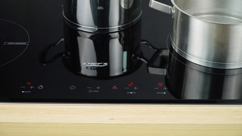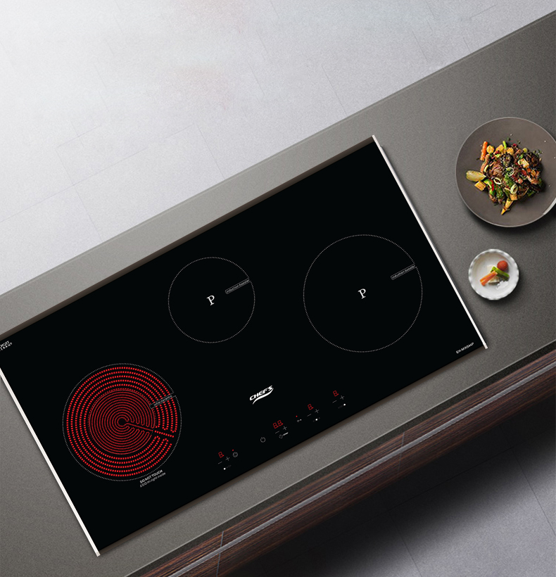 3 vùng nấu của bếp Chefs EH MIX544P được thiết kế trải dài với bảng điều khiển cảm ứng riêng biệt cho từng vùng nấu, vừa hiện đại vừa có giao diện thân thiện dễ sử dụng, dễ thao tác cho mọi người nội trợ. Các phím ấn cảm ứng có biểu tượng dễ nhìn, kết hợp với led màu đỏ rõ nét.